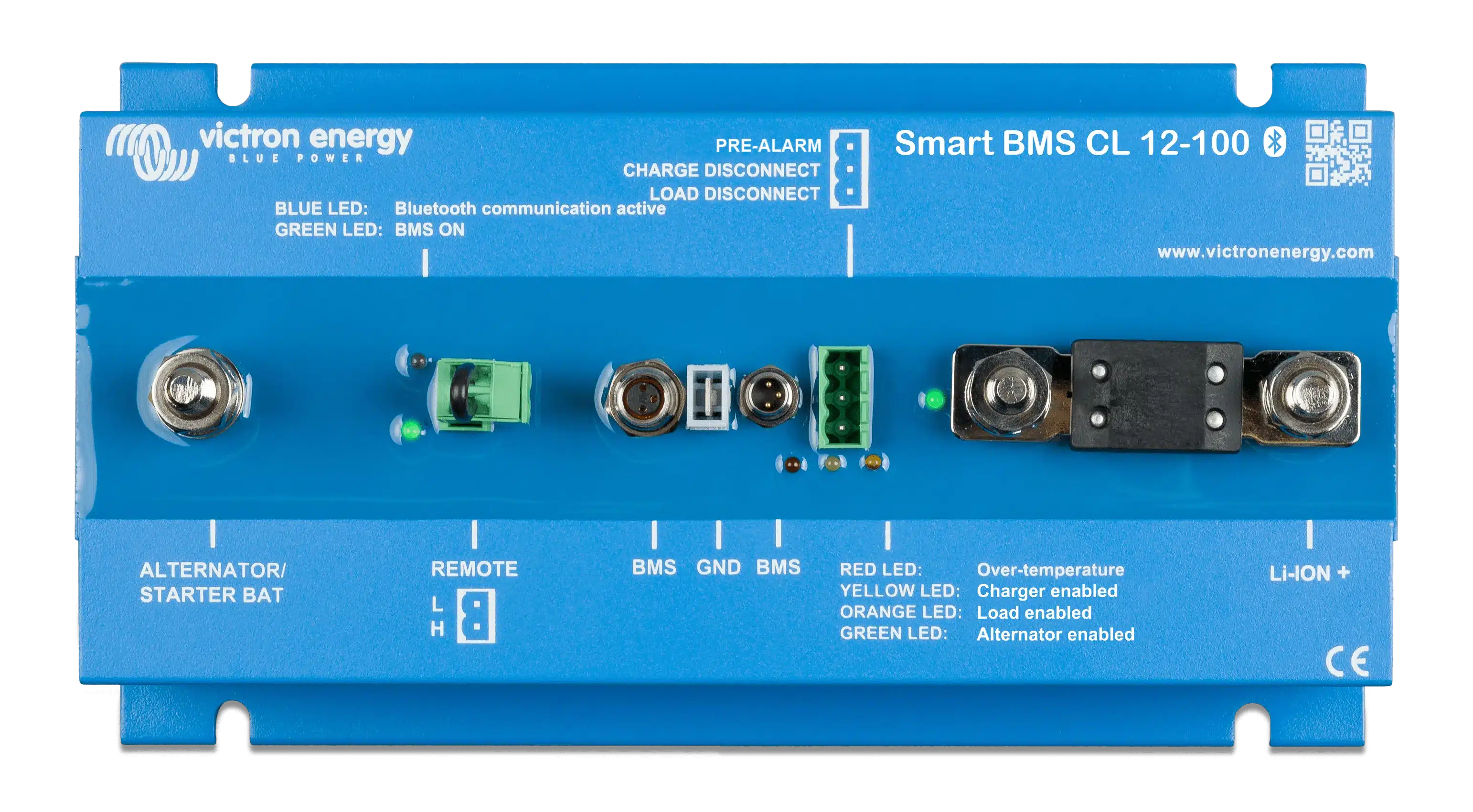 The Smart BMS CL 12/100 is a Battery Management system for Victron lithium-iron-phosphate (LiFePO4) Smart Batteries. It has been specifically designed for 12V systems with a 12V alternator.